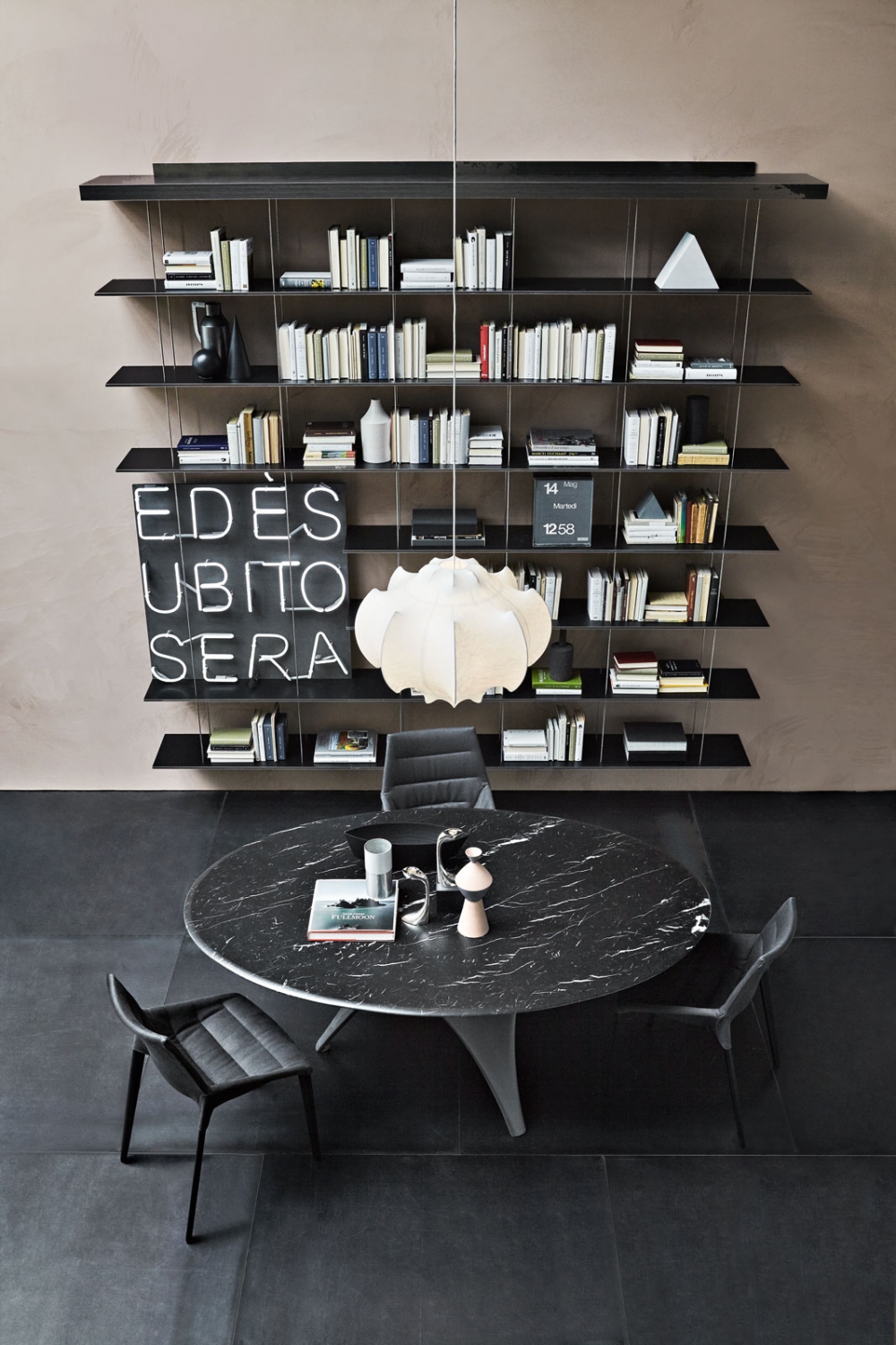 Jean Nouvel has designed a brilliant wall structure resolved in a single shelf anchored to the wall or to the ceiling.